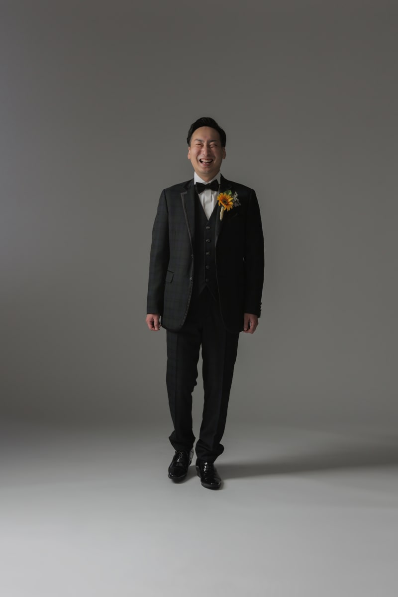 新郎様のソロショット。奥から歩いてきていただいたのですが、意識するとぎこちなくなる歩き方に思わず大爆笑。笑