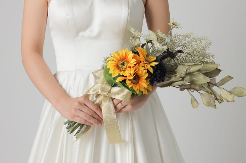すっかり秋の気候ですが本日はひまわりを用いたオリジナルのブーケをお持ち込みくださったお二人のお写真をご紹介します🌻