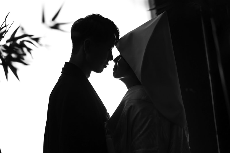 背景の黒と白無垢の白のコントラストがかっこいいですね。