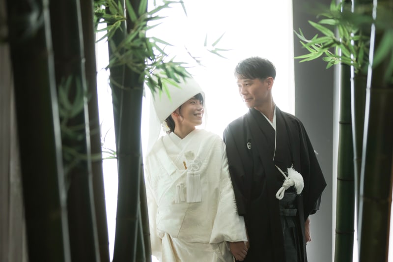今日は白無垢に綿帽子とTHE王道!和装姿で屋内庭園でのお二人をご紹介したいと思います^^