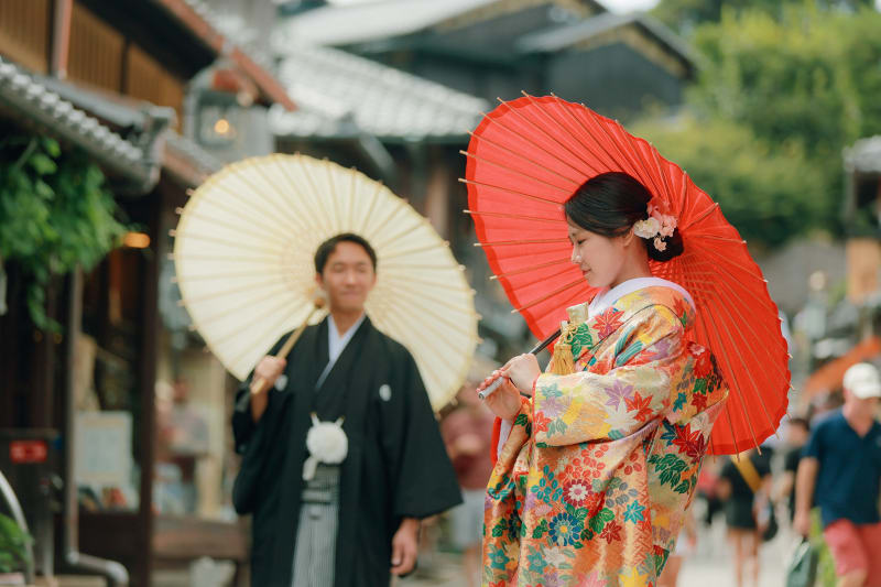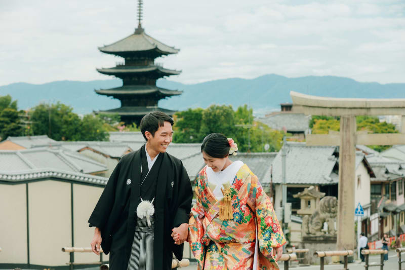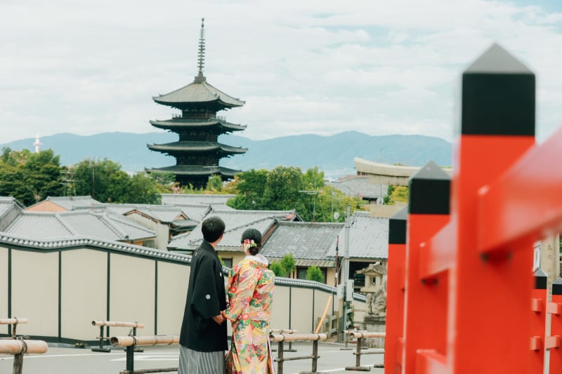 今日はまだ少し夏空残る9月上旬の八坂での和装ロケーションのご紹介です♡
