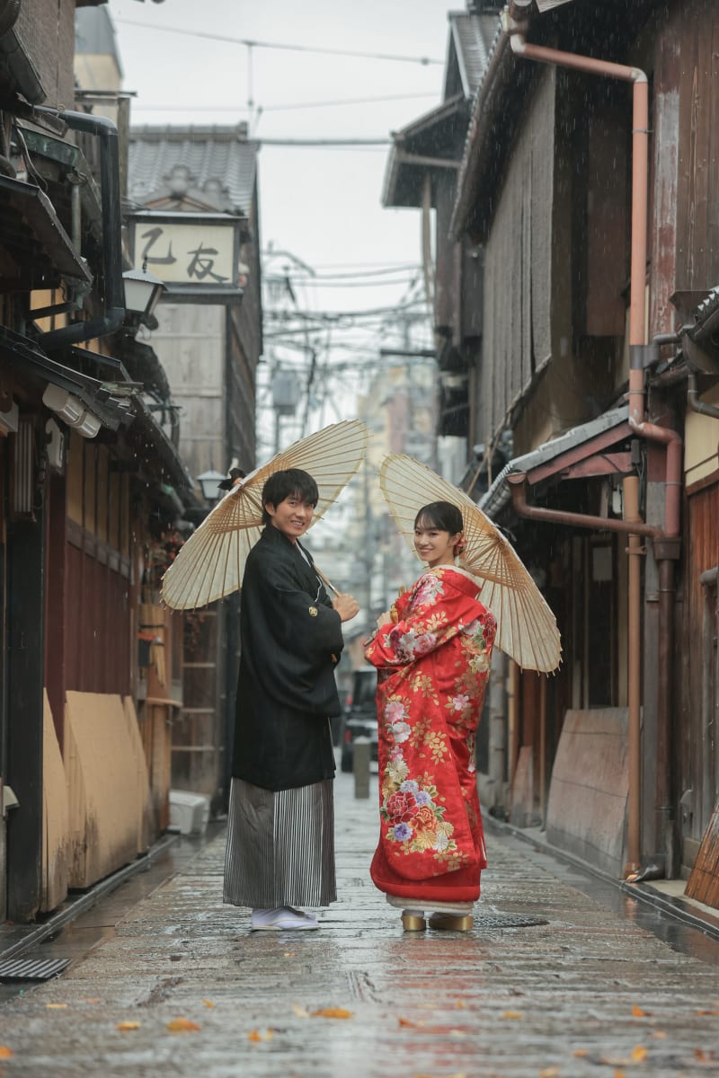 雨でも趣の出る京都でロケーション撮影はいかがでしょうか。