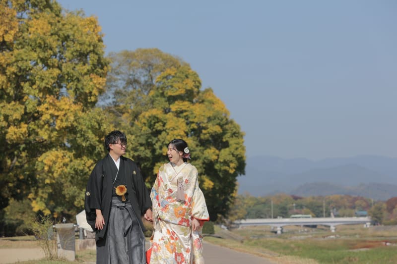 本日は、紅葉し始めた鴨川ロケーションと洋装ハウススタジオをご紹介いたします。