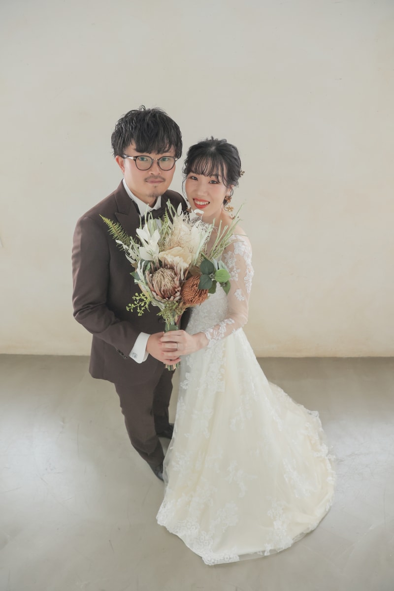 最後はおふたりでブーケを持っている一枚!長時間の撮影でしたが、最後まで笑顔で楽しく撮影させていただきました!