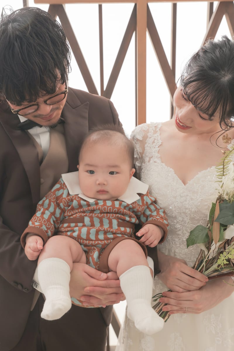 洋装でもお子様と撮影!疲れて少し涙目ですが、そんなお写真も思い出として残させていただきます^^