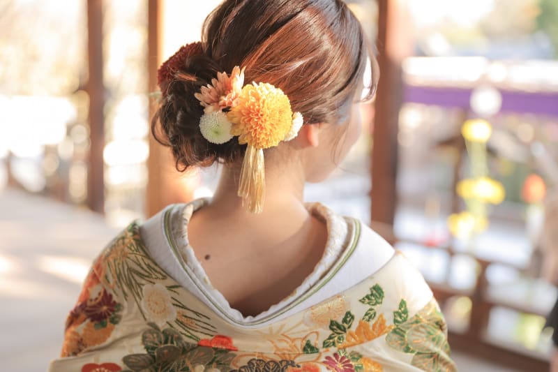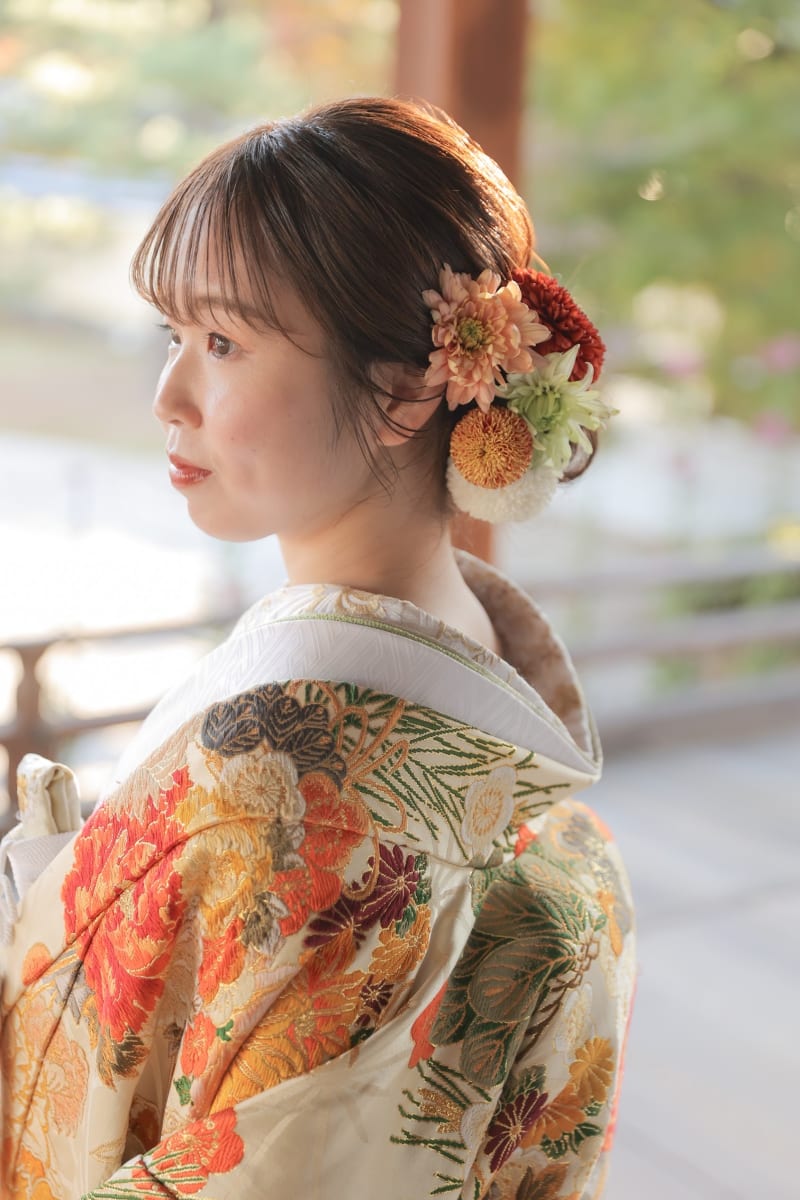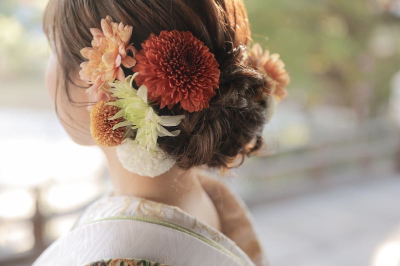 生花を使用した和装ヘアスタイル♪