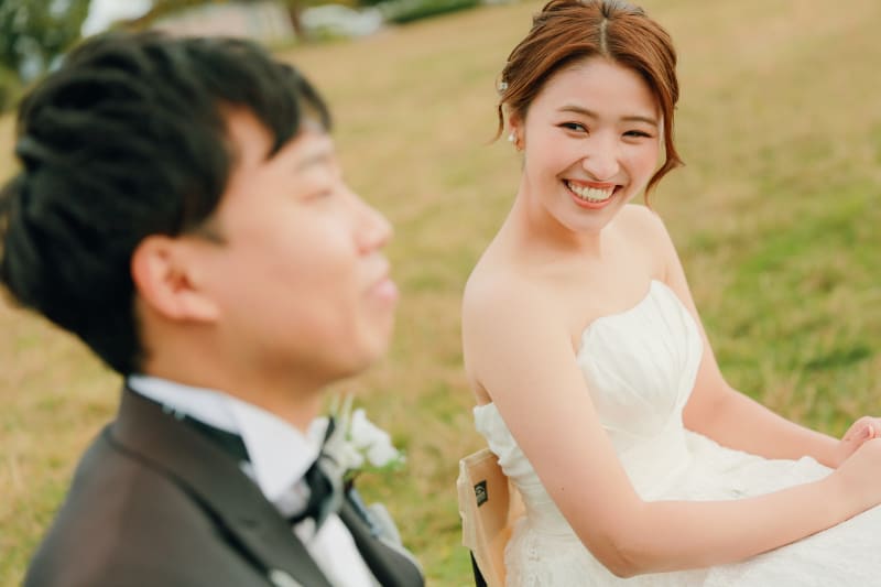 京都市内からわずかな時間で開放感あふれるロケーションフォトが撮れる、「琵琶湖」での前撮りの様子を