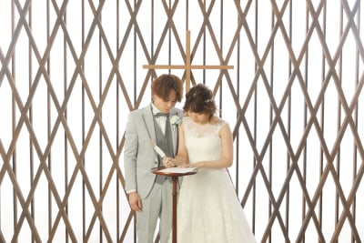 ヴェールアップや指輪交換、結婚証明書のサインのシーンなど近くで