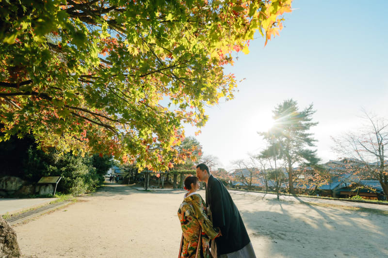 今日は朝日がキラキラ美しい紅葉満開の秋の「八坂」での和装ロケーションをご紹介したいと思います♡