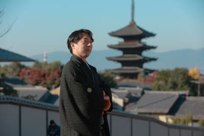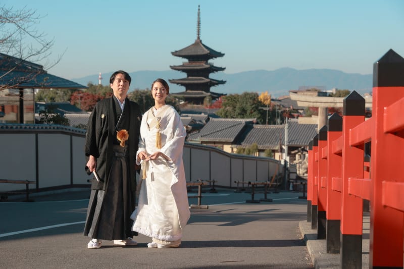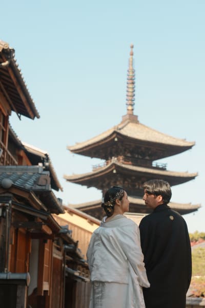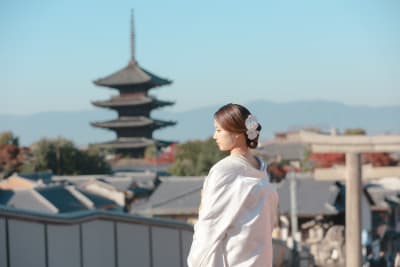 八坂の塔や京都タワーが見える絶景の場所で立ち姿を。