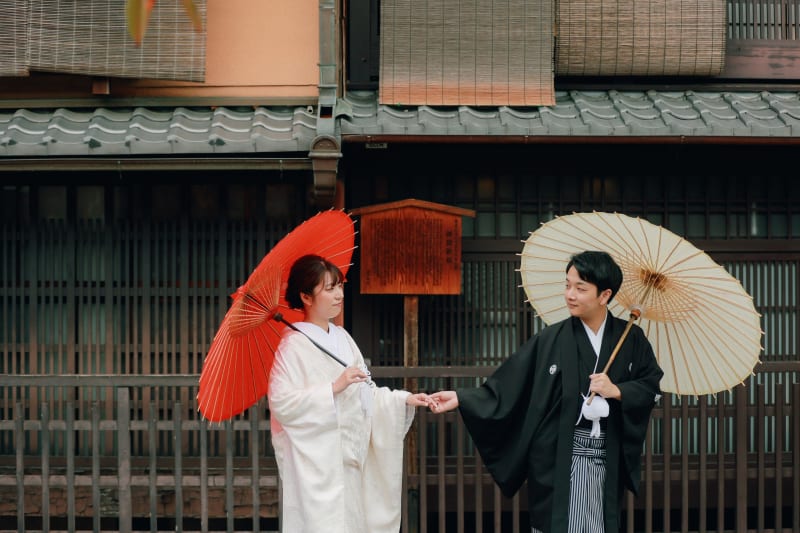 京都らしい街並みに白無垢と紋付袴がよく馴染みます♡