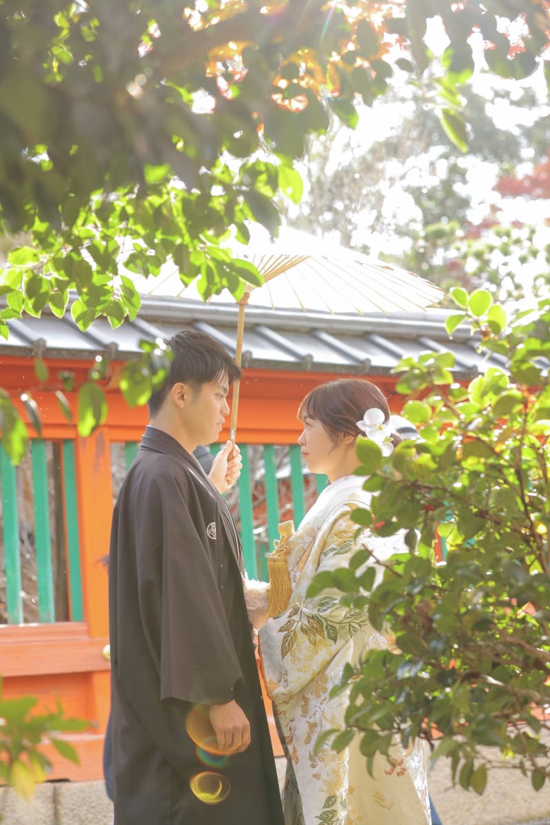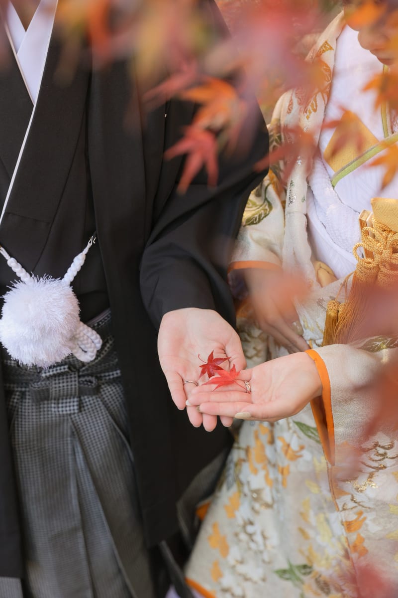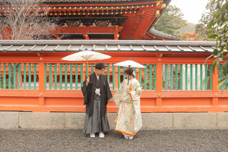 まずは雨が降っていたので和傘を持って撮影!手を繋いでいる瞬間を撮影しました^^