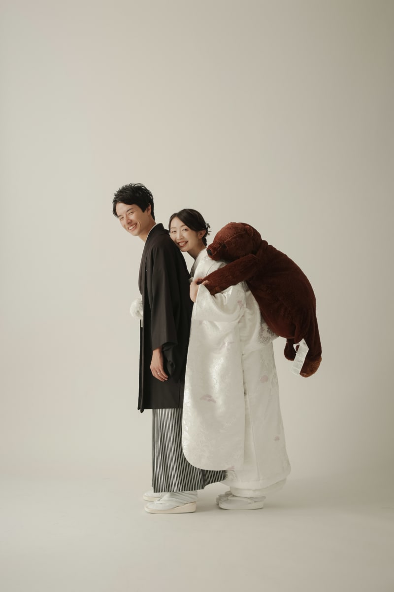 お二人で一目惚れしてお家にお迎えしたクマのぬいぐるみも一緒に参加してもらいました。