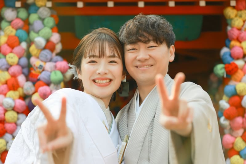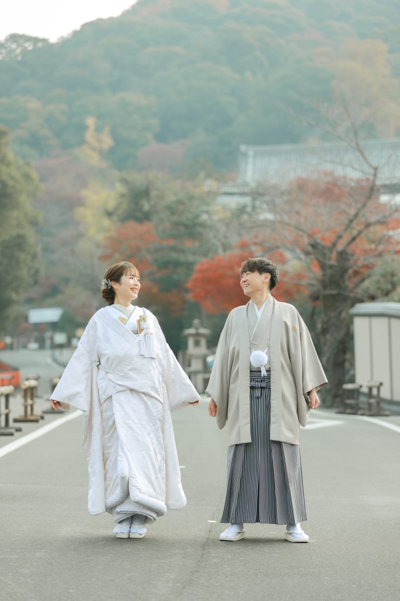 白無垢と紋付袴の淡い色のコーディネートもとっても可愛いですね⭐️