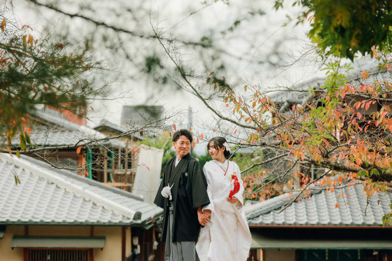 今日は秋の紅葉シーズン真っ只中の「八坂円山」での白無垢前撮りの様子を