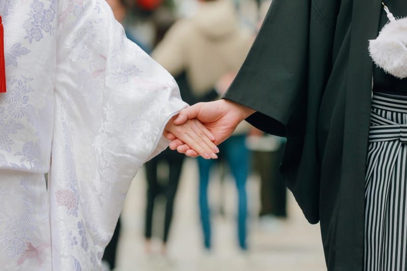 美しい和装姿のお二人に観光客の方達も釘付けですね♡