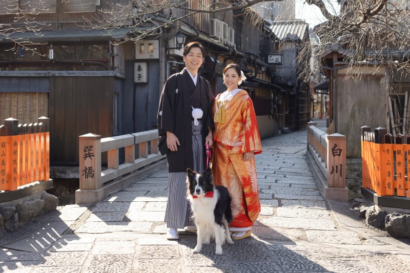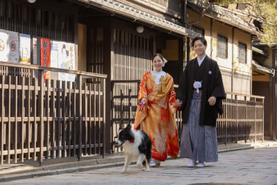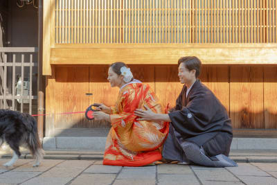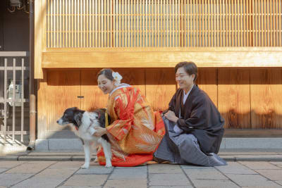 本日はワンちゃんと一緒に撮影されたお客様の写真をご紹介させていただきます。