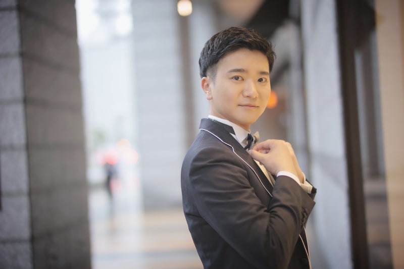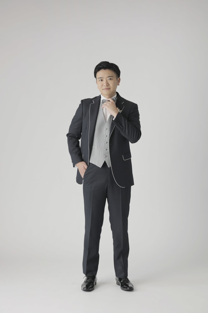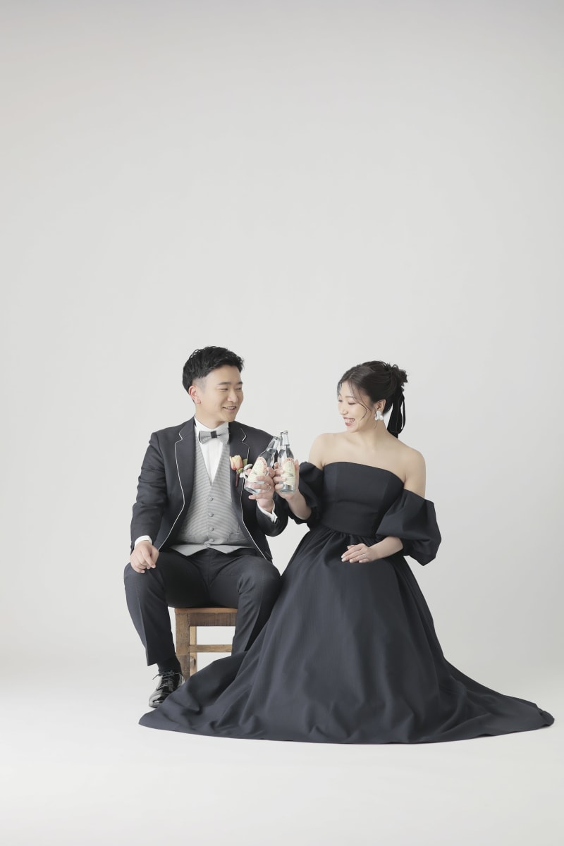 黒のタキシードでスタジオ撮影を楽しんでいただきました。