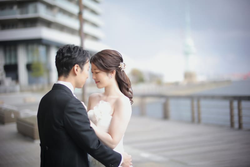日差しが新婦様のお肌にあたり、艶感肌がとても素敵でした。