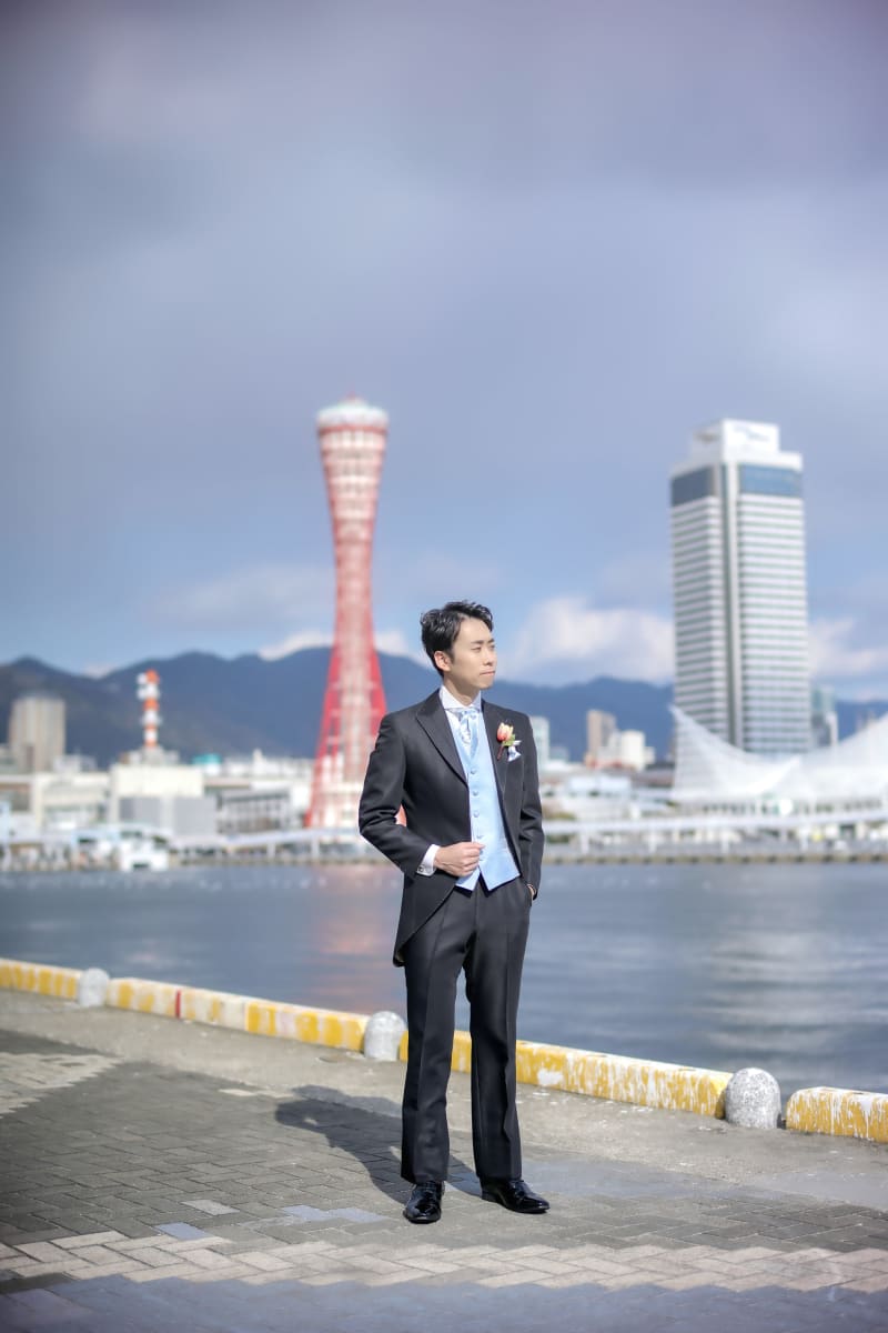 新郎様も日差しを浴びて、キリッっとした立ち姿。