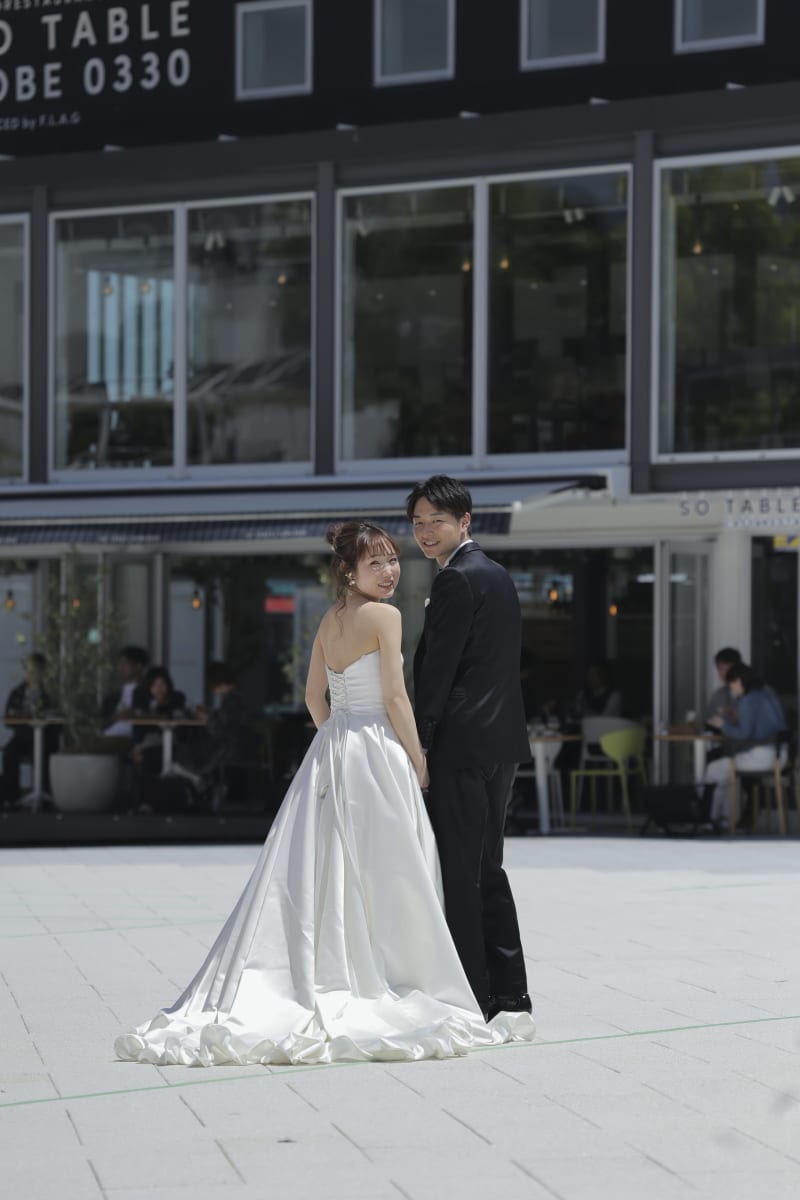 神戸はおしゃれなお店があるので、お二人の散歩シーンにもいいショットが