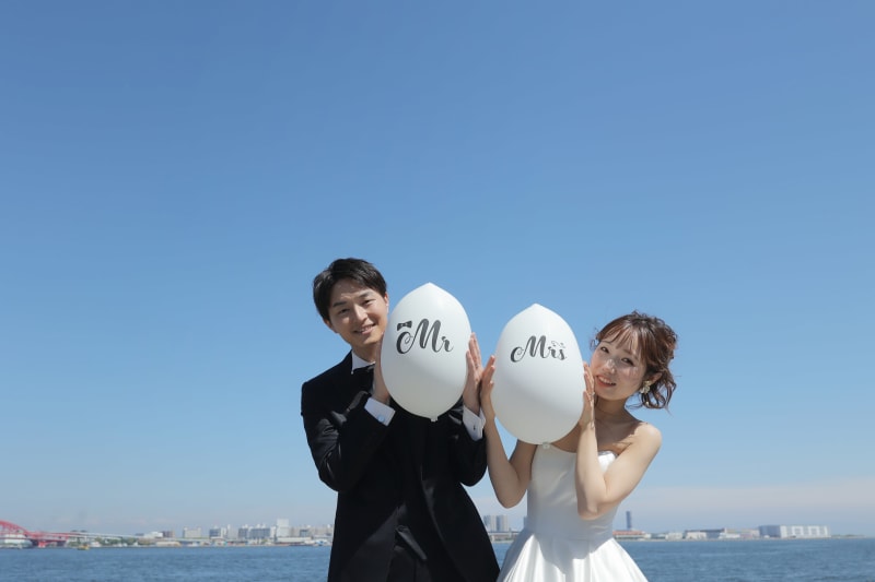 神戸ならではの背景も入れつつ、二人の目線の先には何があるのかな?