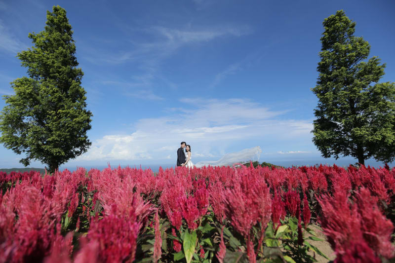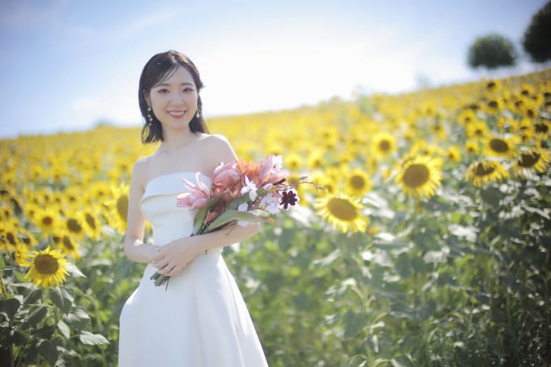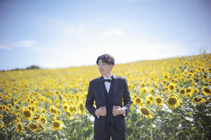 ひまわりだけでなく、色んないろのお花が花さじきにはあり、緑と白に青い空と本当にいいロケ場所でした。