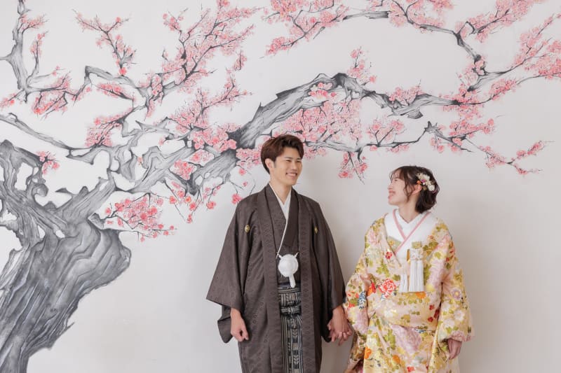 和室風のセットや紅葉の飾りを加え、寒い季節ならではの雰囲気を演出することも可能です。温かみのある照明と和のセットが織りなす冬の特別なムードの中、撮影された写真は、シーズンならではの特別な仕上がりに。