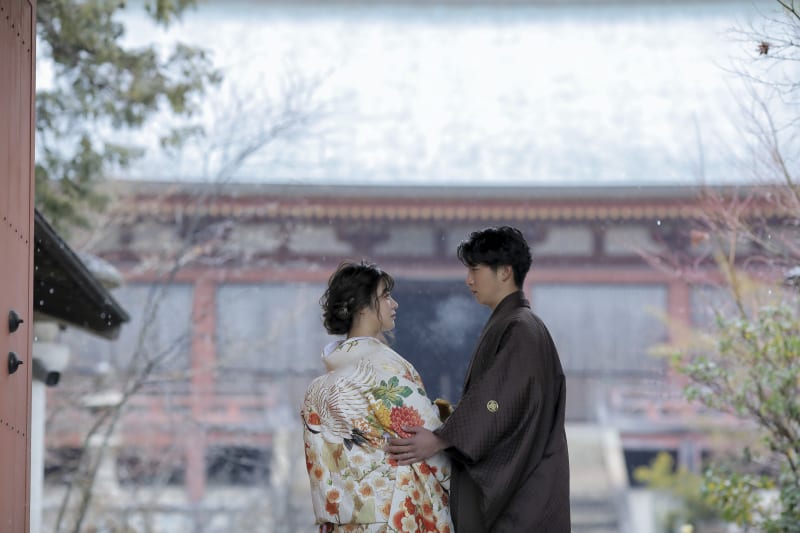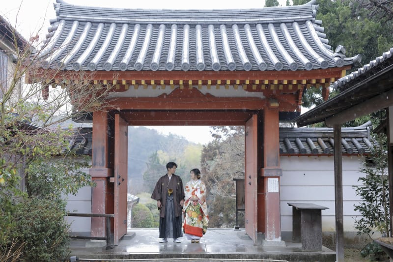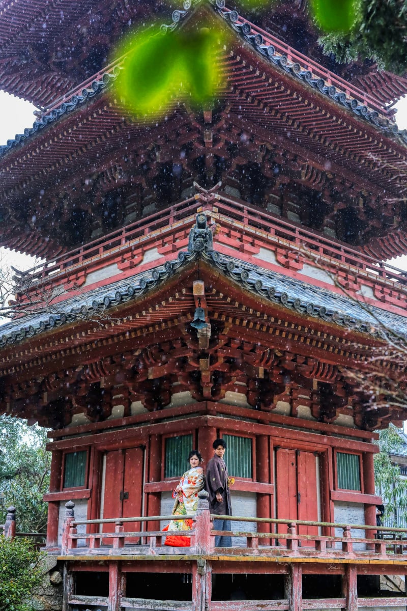 三重塔も味わいがあり、タイムスリップをしたかのような撮影も和装ならではです。