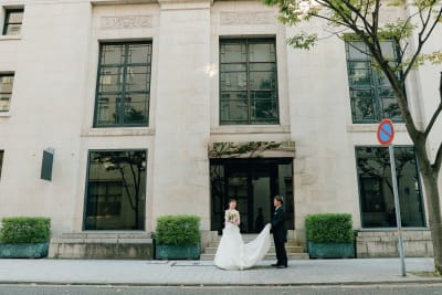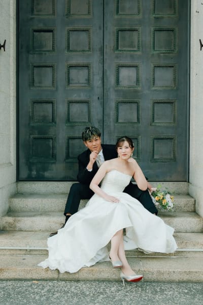 衣装は白と黒でクラシックな雰囲気になり街並みにぴったりです!