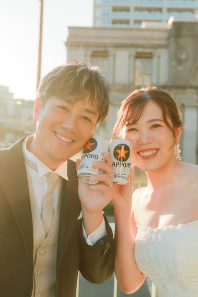 ラストはおふたりの好きなビールの小物を使って撮影しました!