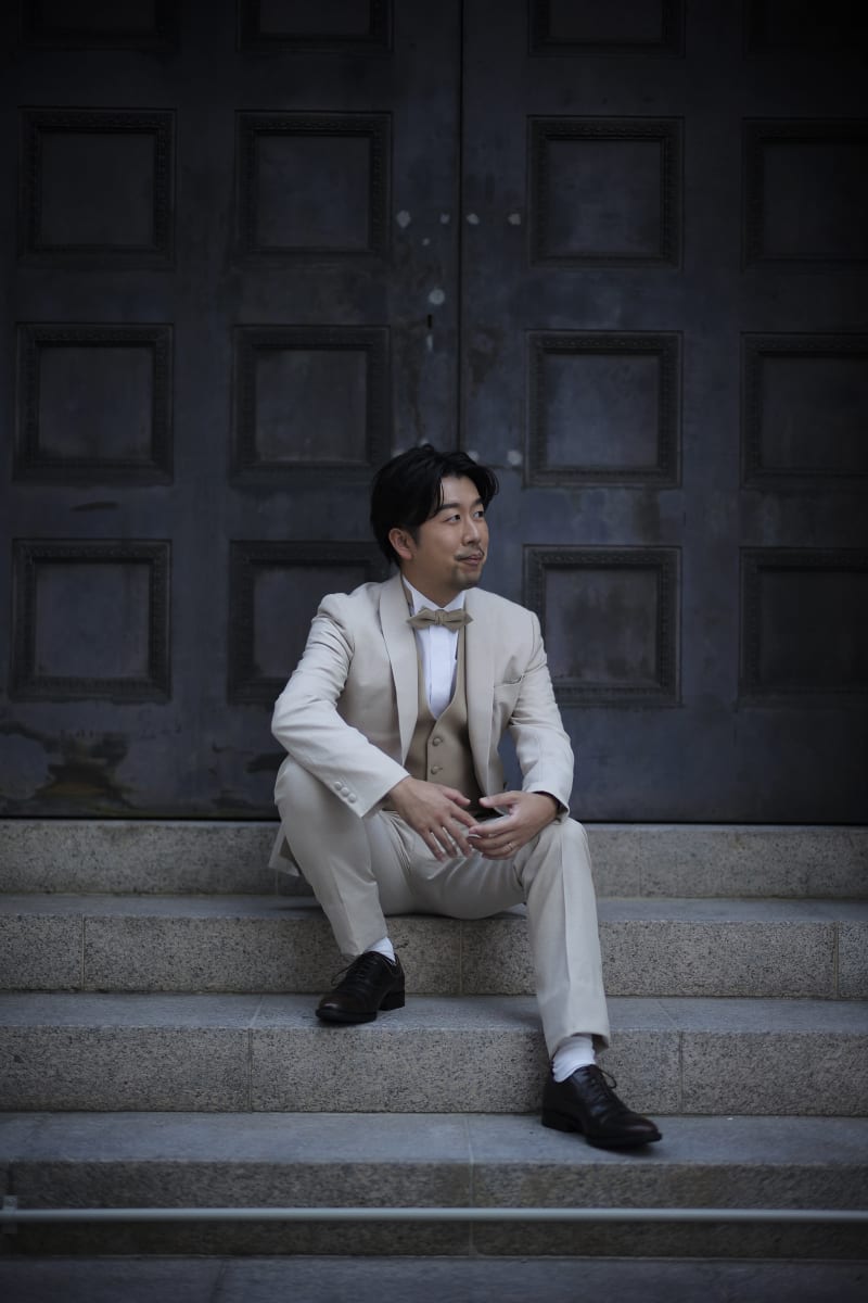 新郎様のタキシードもカジュアルな感じもありつつ、大人感じもする衣装です。