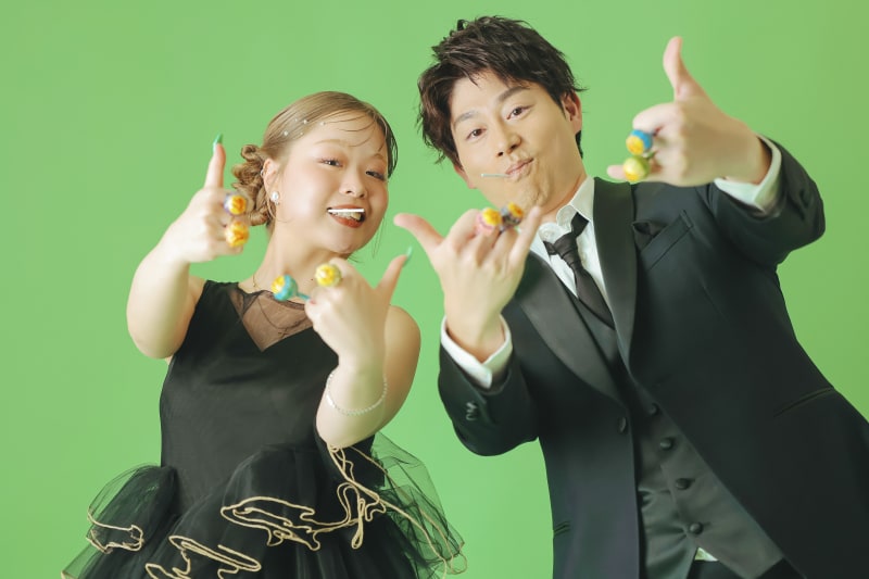 今度は背景色をミドリに変えて、お茶目なツーショットを