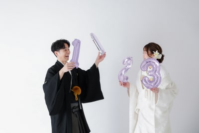 スタジオ撮影は持ってきていただいたアイテムでお二人らしさを演出することもできますよ!