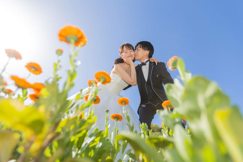 綺麗な青空と可愛らしいお花とお二人の素敵な笑顔が最高!!!!