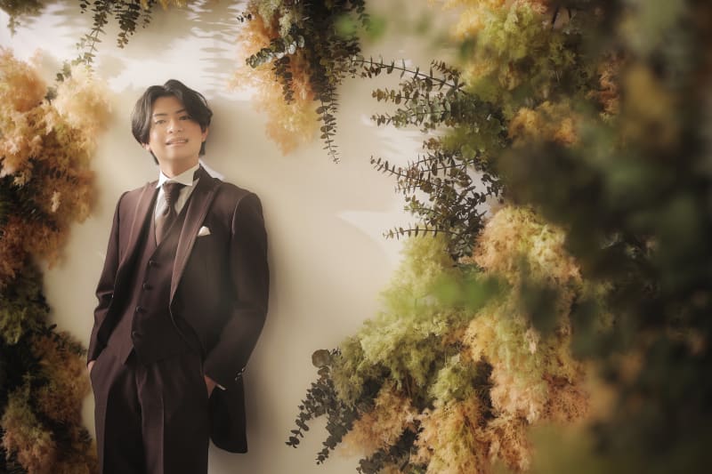 また、スモークツリーのお花を背景にしたショットでは、ふわっとした不思議な空気感が漂い、とても幻想的な一枚に。これは本当に二人の思い出に残るシーンだったと思います。