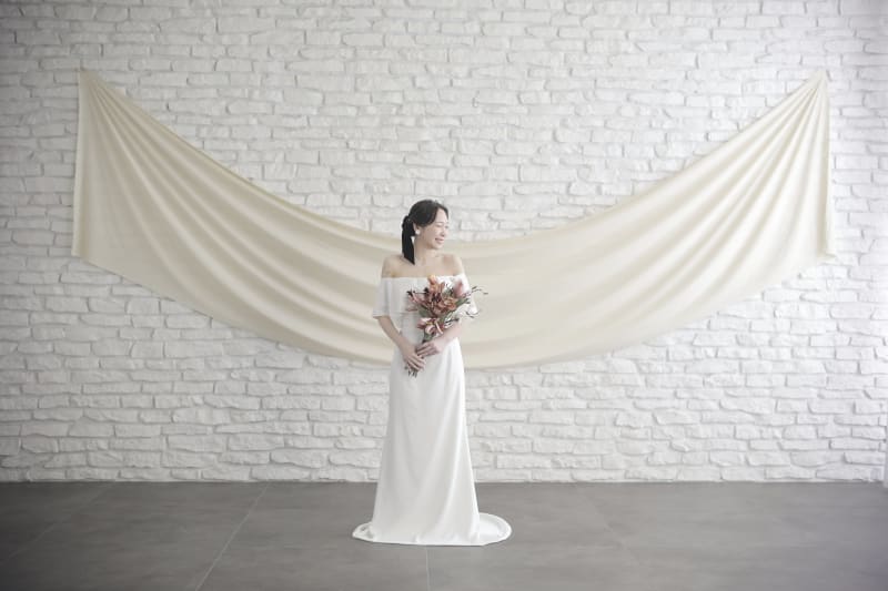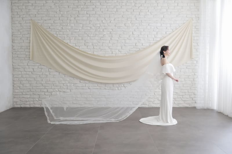 ベールシーンもスタジオ内に自然と風が入ってきたみたいに、フワッとしていただきました。