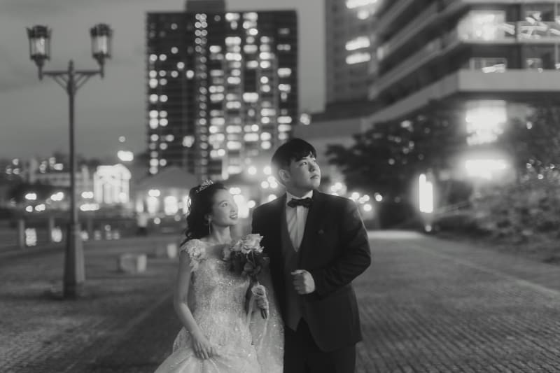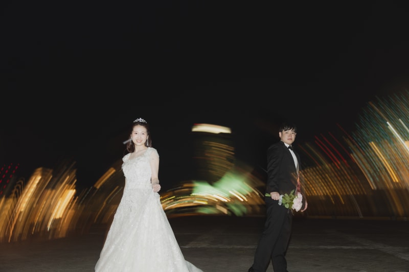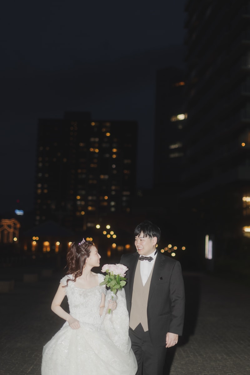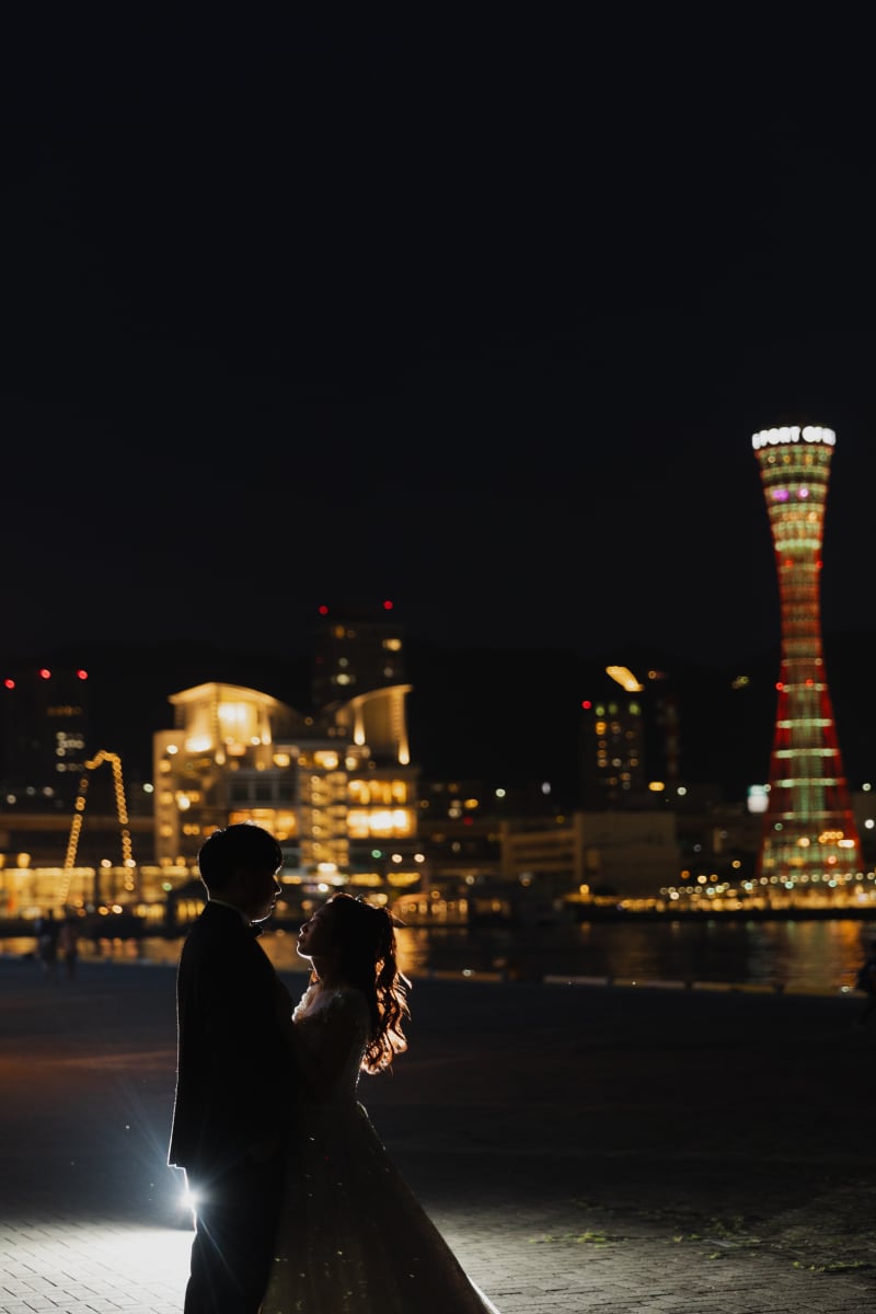 夜景をバックにしたウエディングフォトは、昼間とは違った大人っぽく、ロマンチックな雰囲気を出してくれます。