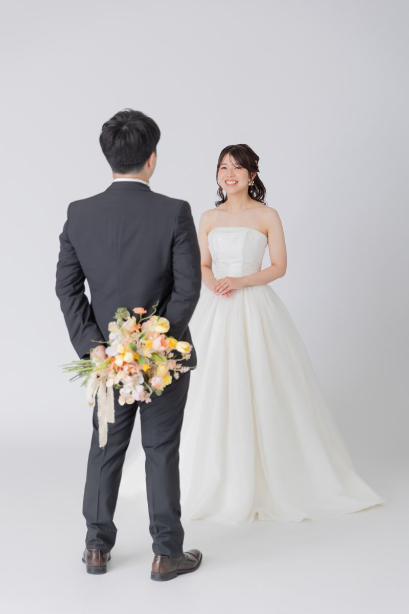 スタジオでは、ファーストミート風のシーンや、ブーケサプライズなど、思わず笑顔が溢れる演出も叶えることができます!