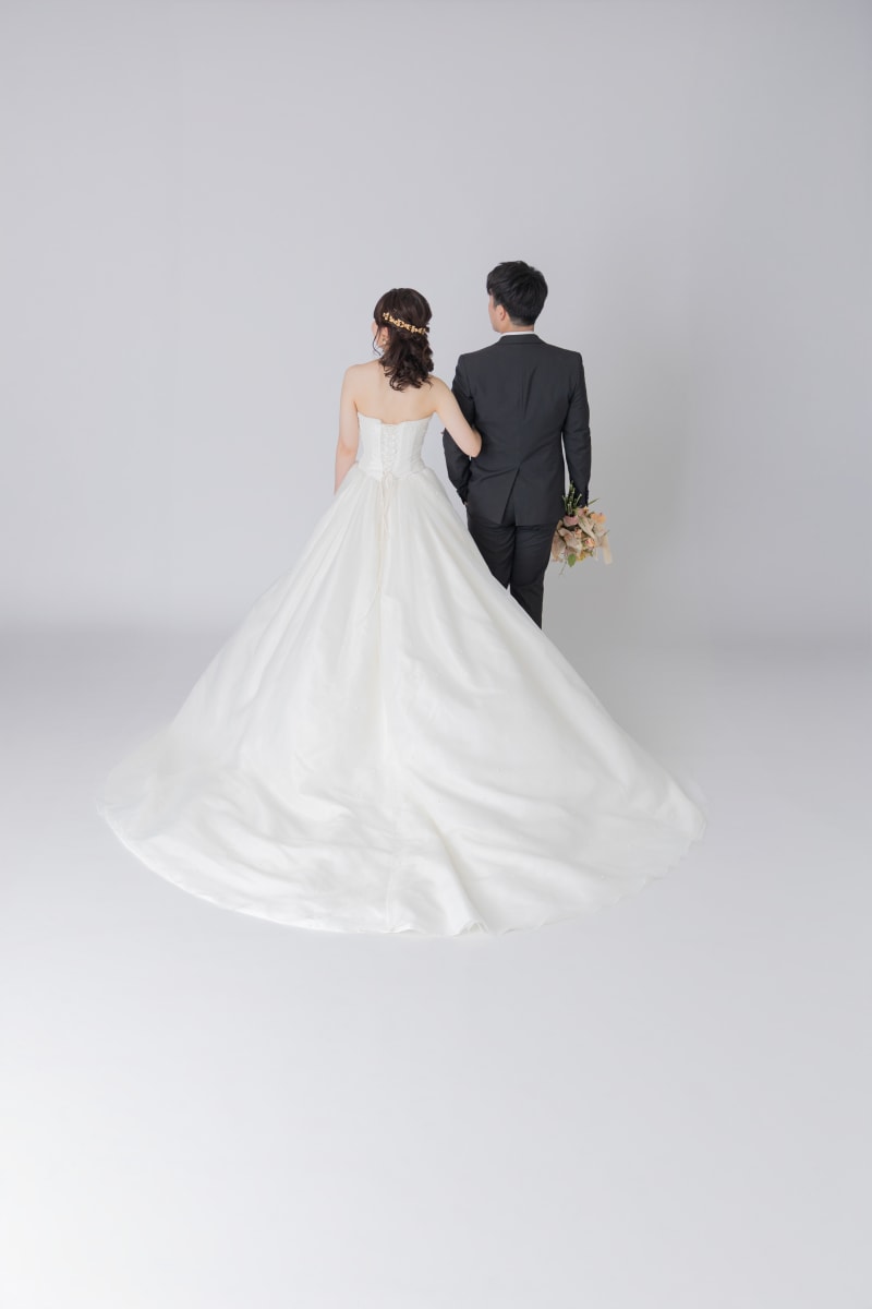 ドレスやタキシードの美しいシルエットが引き立つ背景で、シンプルながらも洗練された写真を残すます。
