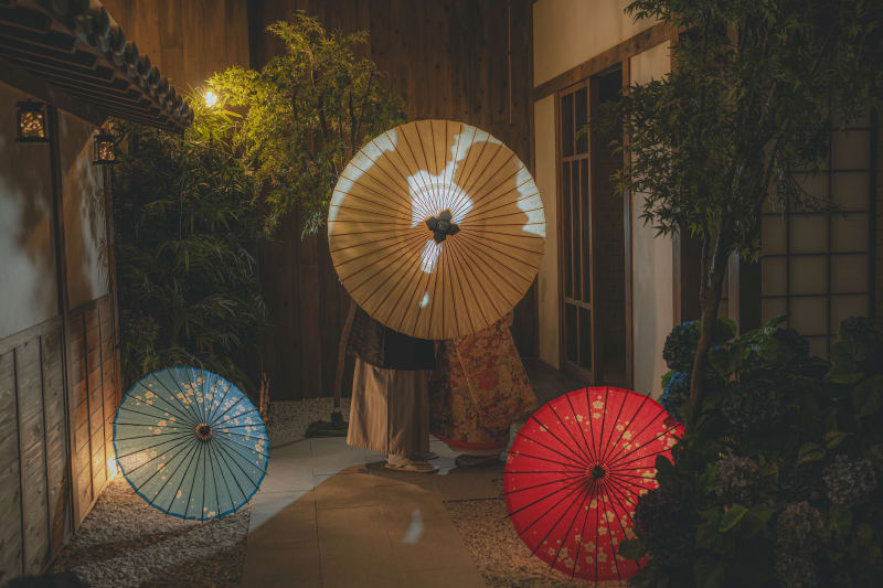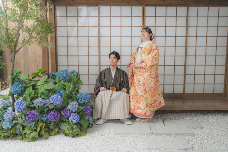 暑い中で外での和装撮影はとても大変なので、和装だけ室内で撮影するのも人気の組み合わせです!