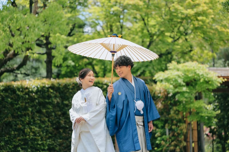 番傘を使いお互い振り向きながらのショット。