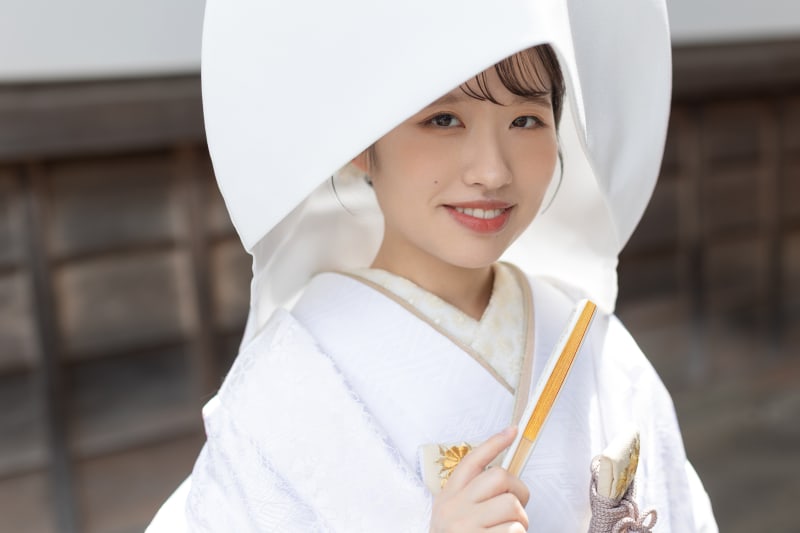 綿帽子はウェディングベールと同じ意味を表しており、スタジオ、ロケーション場所を問わず白無垢の場合着用していただけます!