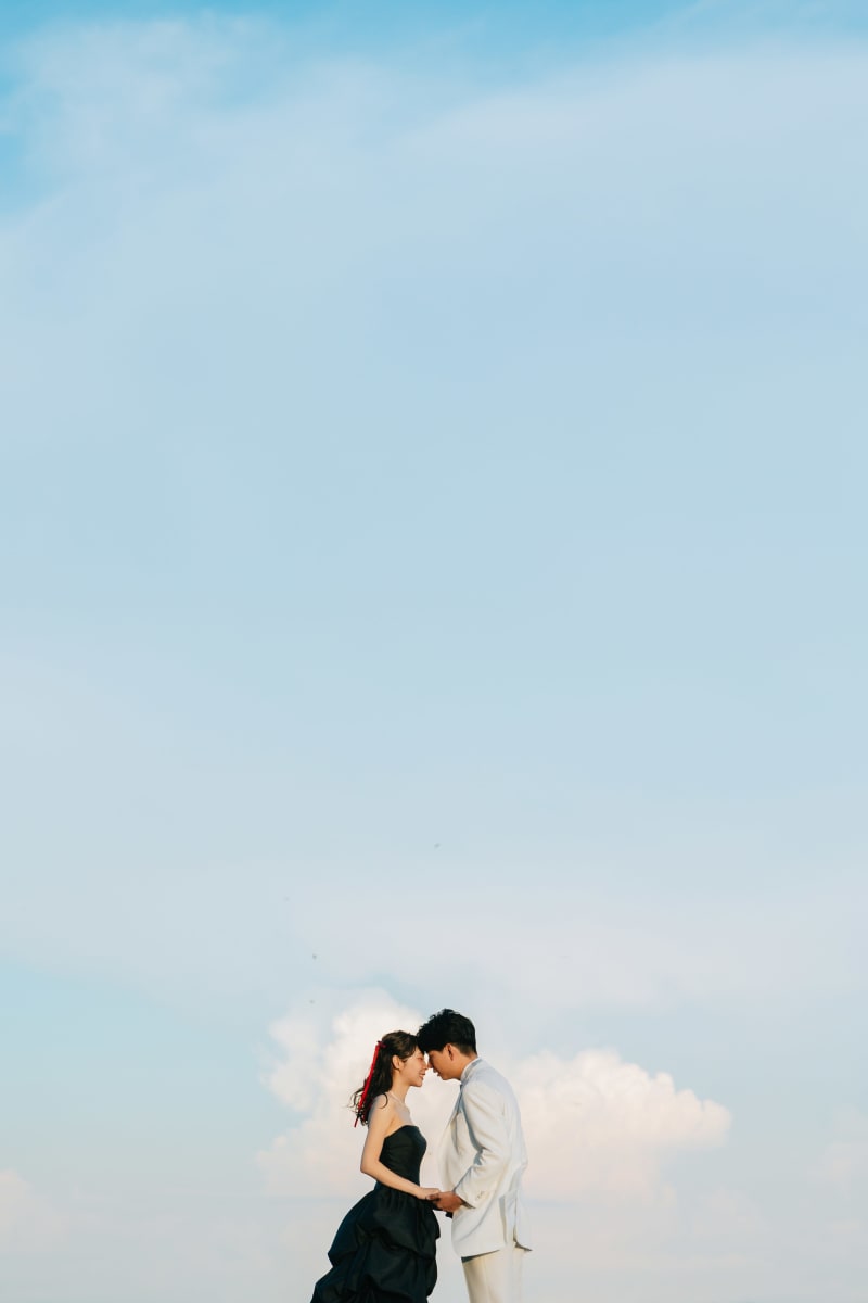 青く広がる空の下で、自然体の二人をはじめに撮影をしました。