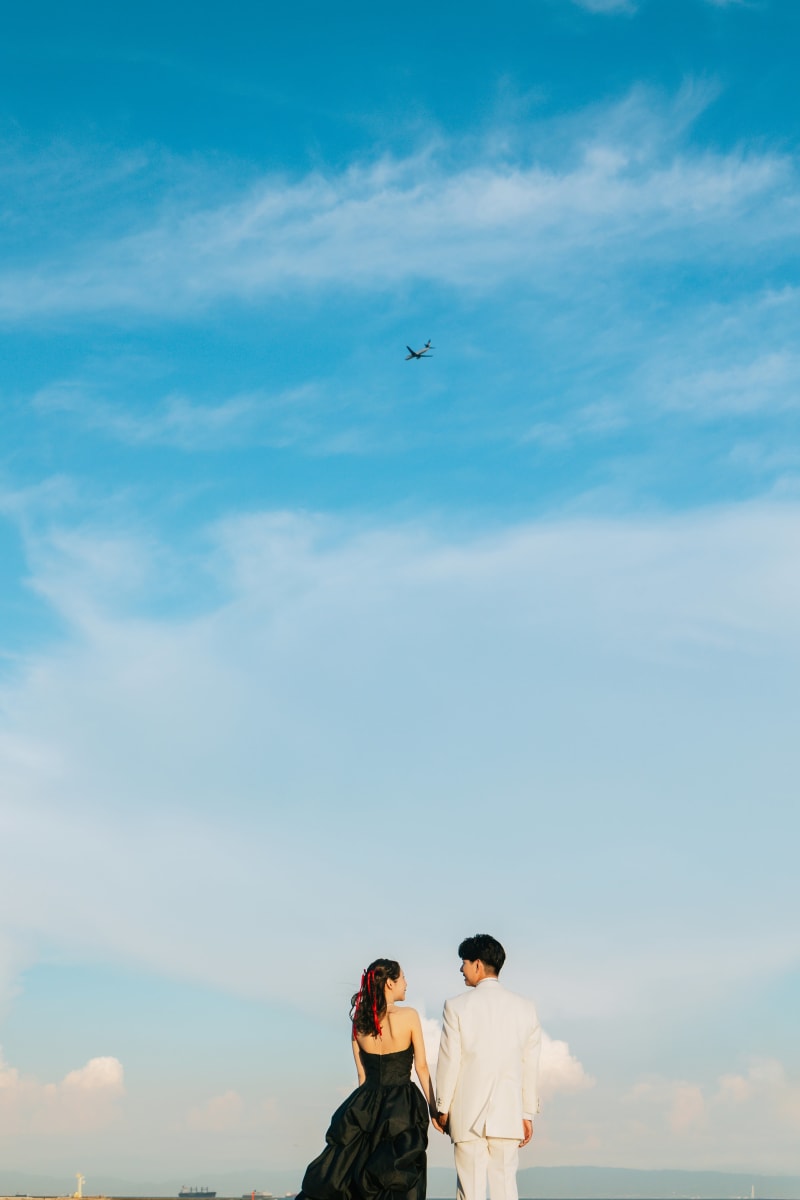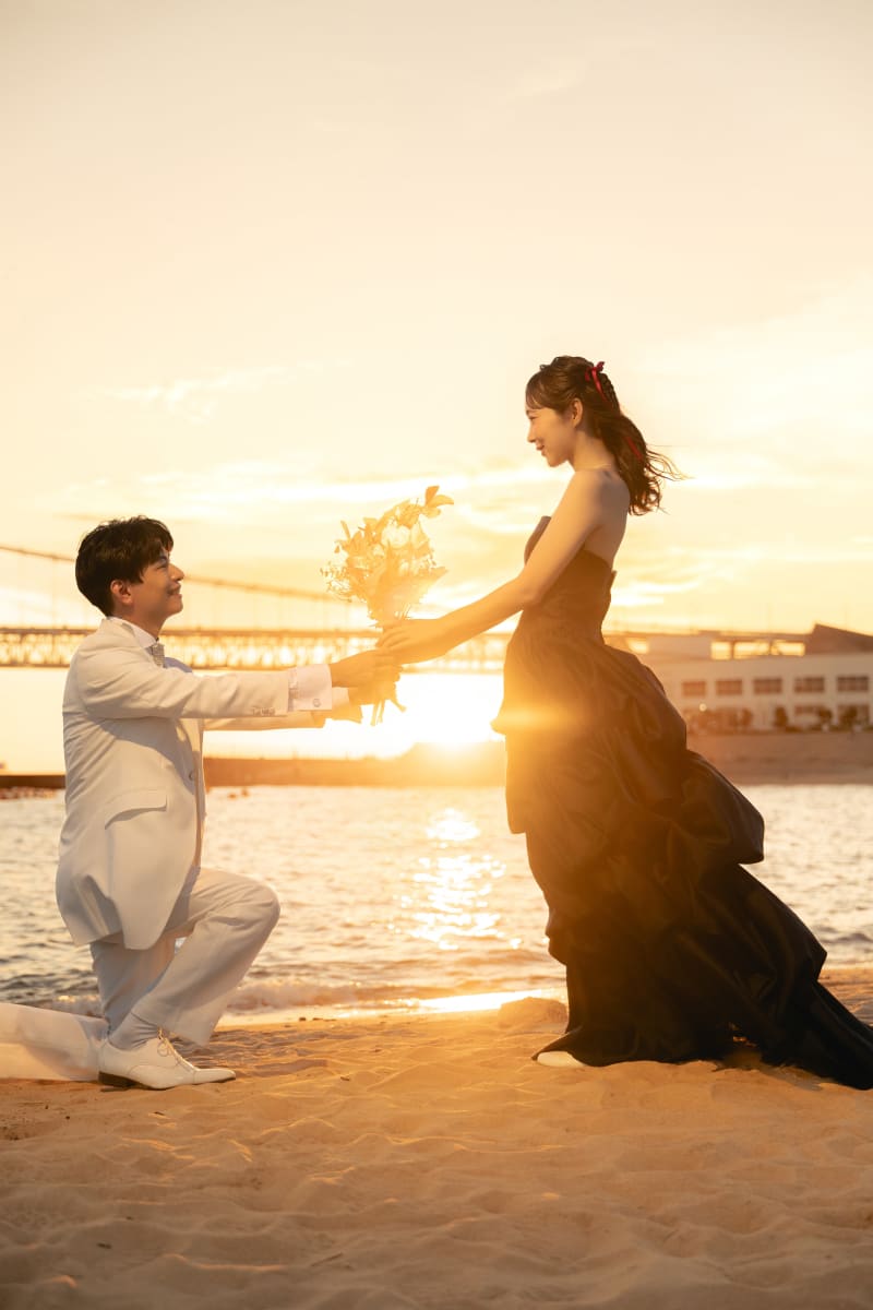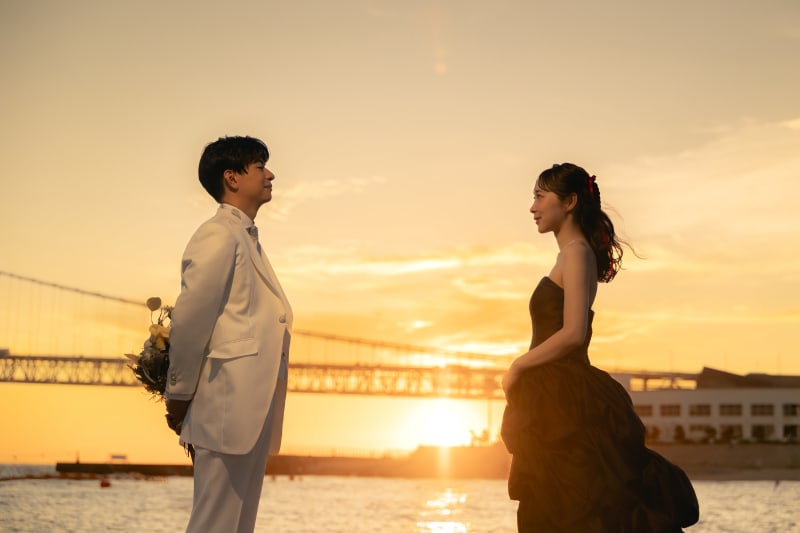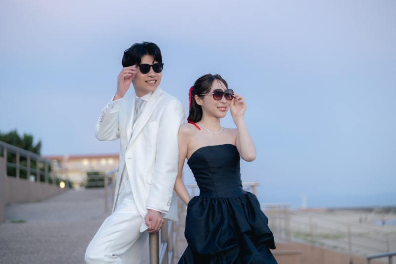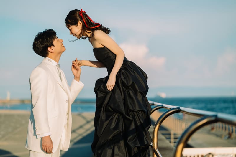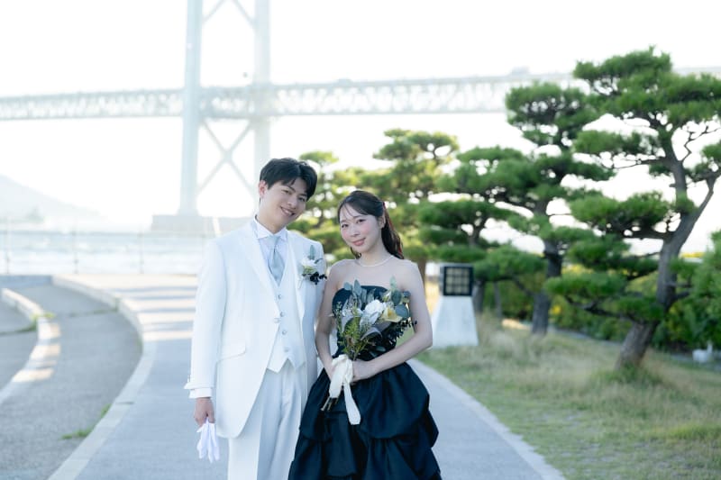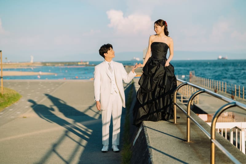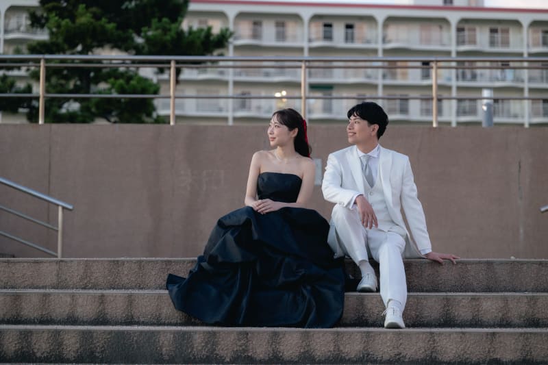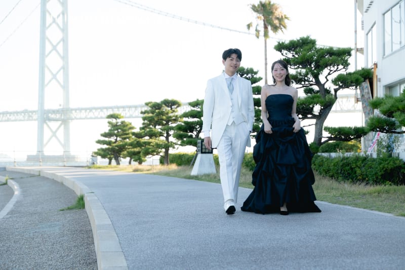 お二人はスタジオで白ドレスでも撮影をしていて、カラーでロケ撮影を