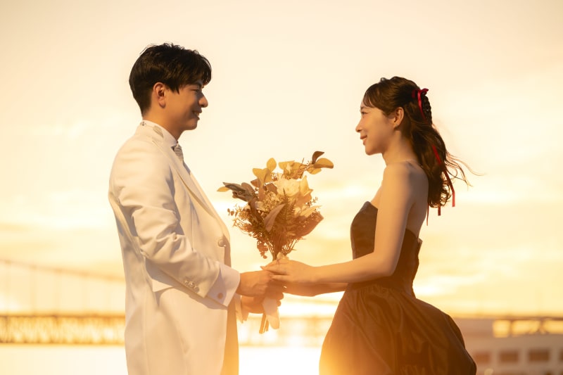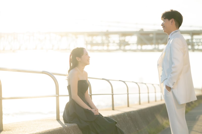 映画のワンシーンのような一枚に。昼間の撮影ならではの透明感が太陽の光で二人を包んでくれていました。