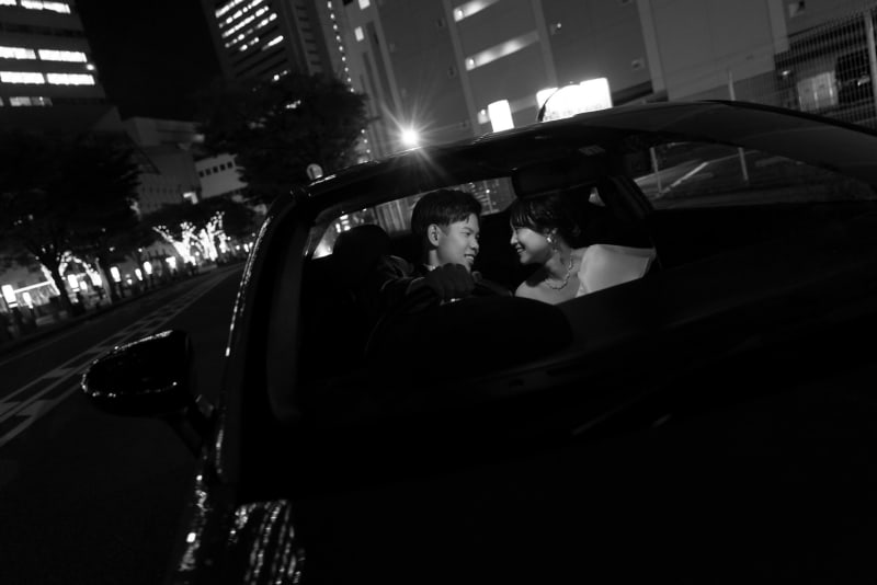 車の中で見つめ合うおふたりのショット!!