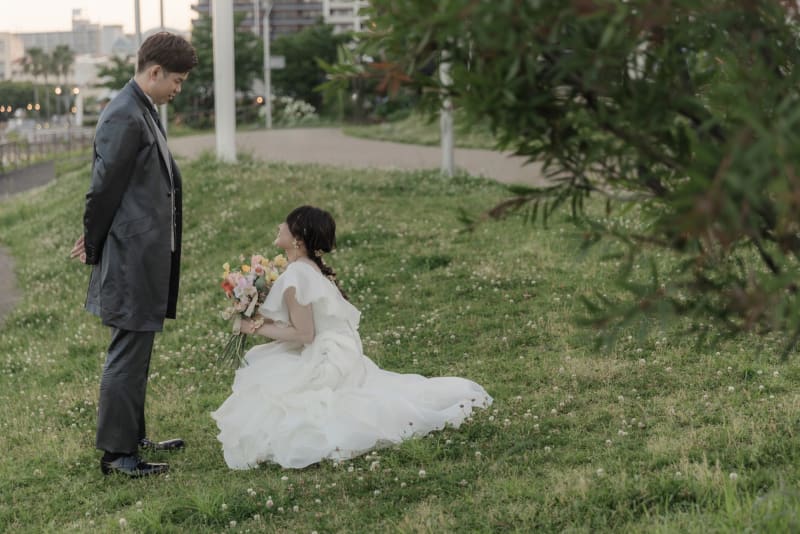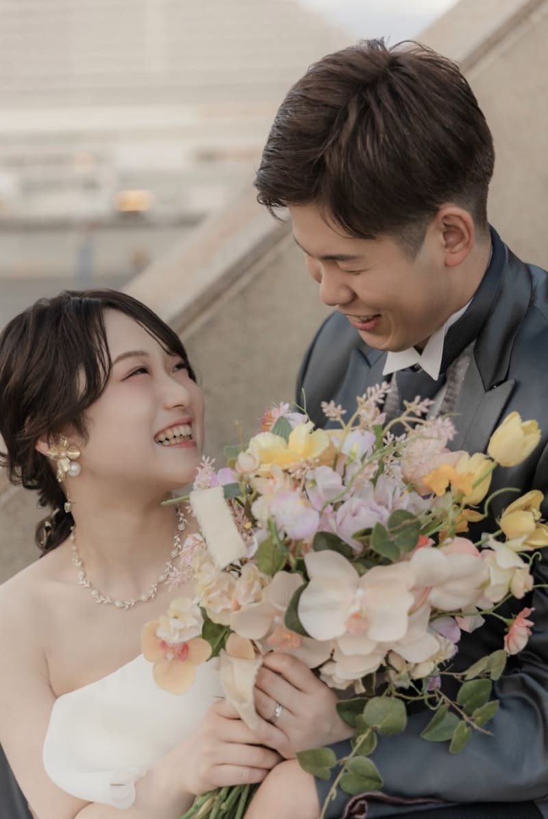ブーケを手に見つめ合うおふたりの笑顔はとても幸せいーーっぱいでカメラ越しにも幸せが伝わってきます🌼