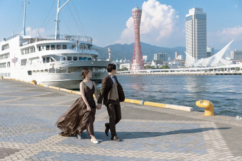 神戸のシンボルであるポーオタワーと街並みを背景に、
