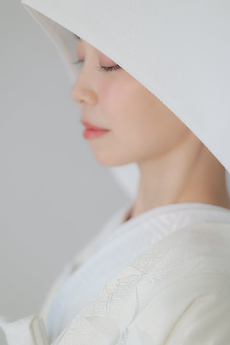ラストは、新婦様のご希望で綿帽子をつけ、厳かな雰囲気での撮影。